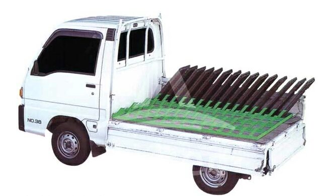 次は苗ラックコンテナの軽トラック荷台への固定手順です。