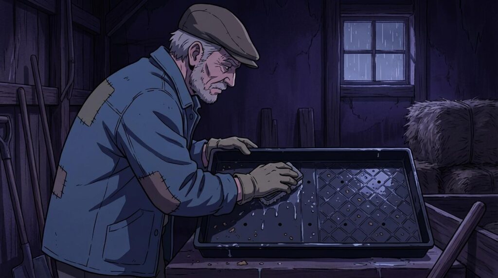 基本的に使用済みの箱に土や根の残りが付いたまま保管すると、翌年の育苗で病原菌が発生するリスクが高まります。使用後は以下の手順でメンテナンスしましょう。