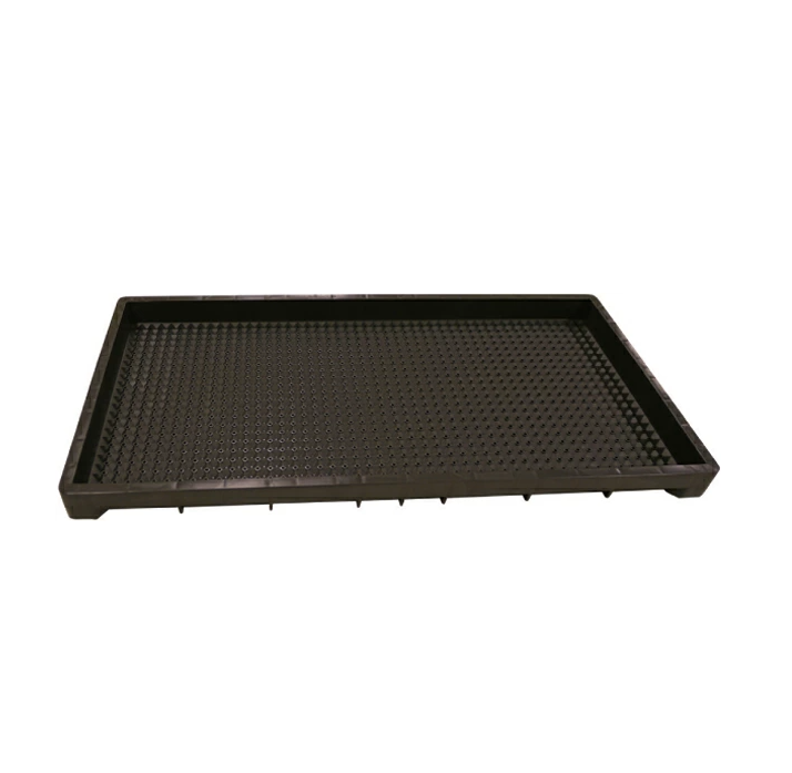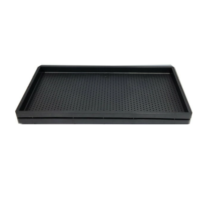 底面に約1,300以上もの細かな穴が空いている、昔ながらの育苗箱です。裏面が平らで、通気性と水はけに非常に優れています。プール育苗に使ってないといえば嘘にはなりますが、殆ど使われていません。
